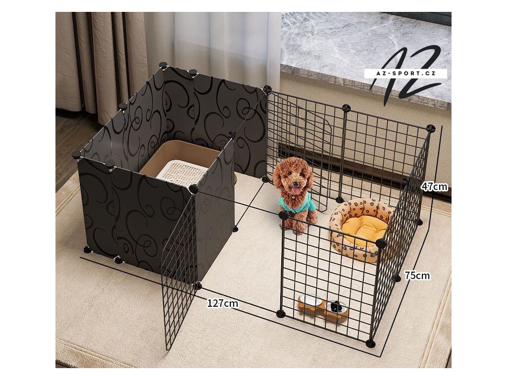 Ohrádka s dvířky pro menší domácí zvířátka. Vhodná do vnitřních prostor, výška 45 cm, variabilní rozměry.