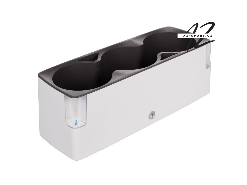 Větší samozavlažovací květináč pro tři květníky, ideální pro pěstování bylinek a rostlinek v domácím prostředí.