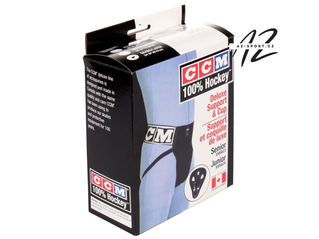 Suspenzor CCM Deluxe Support Cup XMS624 je navržený pro juniorské hráče ledního hokeje. Je vhodný pro rekreační i pravidelné hokejisty. Široký elastický pás poskytuje vysoké pohodlí i při dlouhodobém nošení. Ochranu intimních partií zajišťuje vyjímatelný PP výlisek. Upozornění: Sportovní suspenzor je navržený tak, aby minimalizoval riziko zranění. Žádný suspenzor nedokáže zcela eliminovat veškerá možná zranění. Před použitím si přečtěte informace pro uživatele (ke stažení). Velikost / Obvod pasu [cm] S: 51 - 61 cm, 20 - 24" L: 66 - 76 cm, 26 - 30"Doplňkové parametry