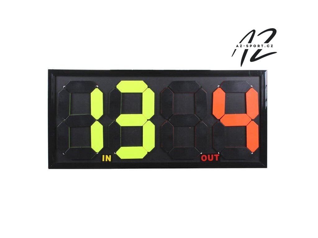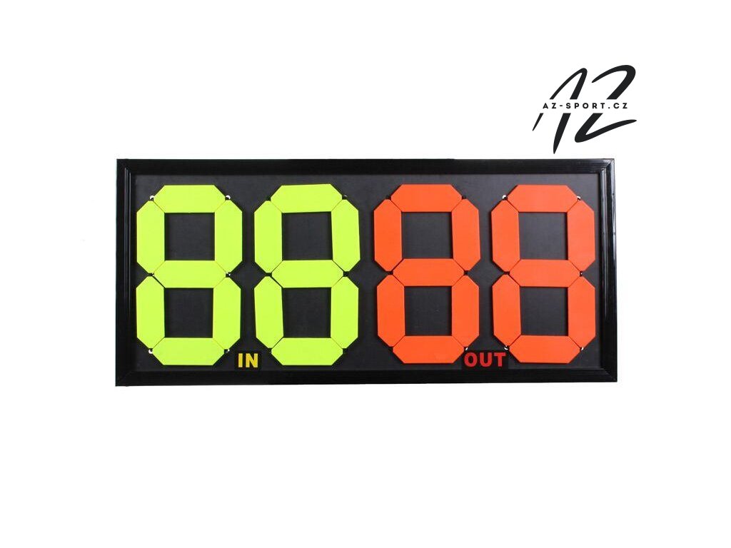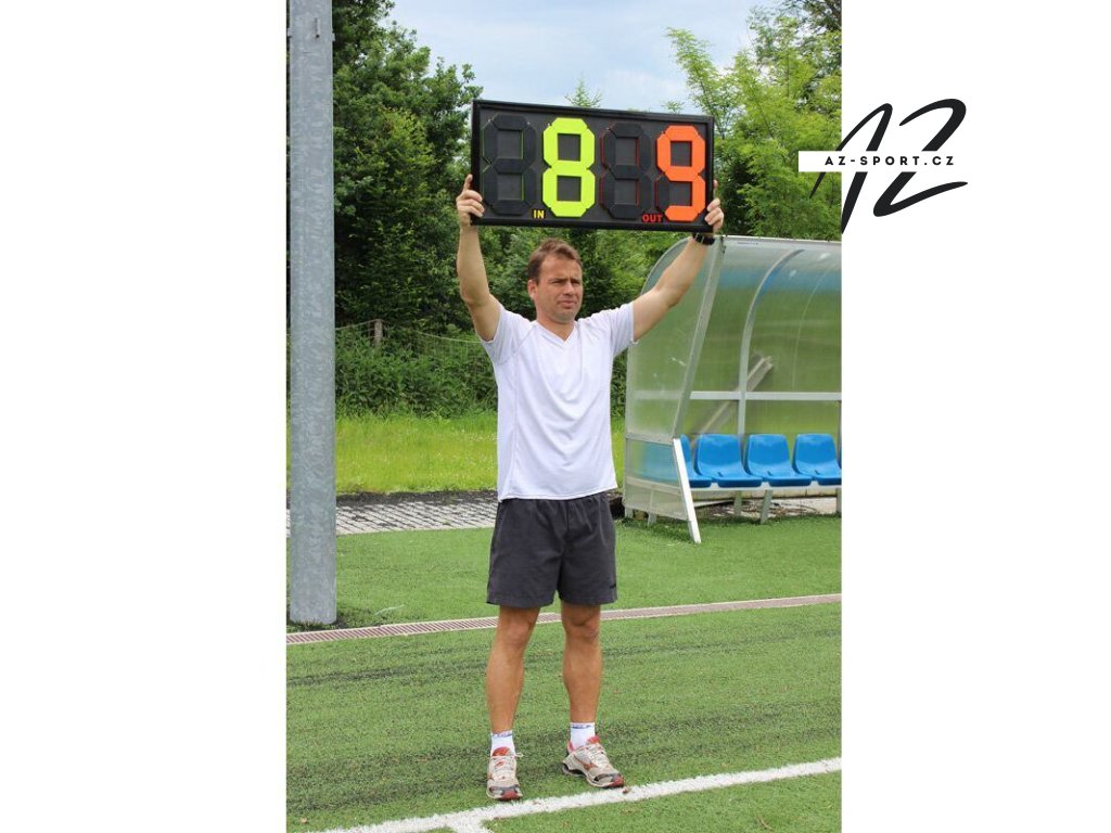Jednoduchá mechanická tabule pro střídání hráčů v poli. Základní pomůcka pro každý fotbalový tým.