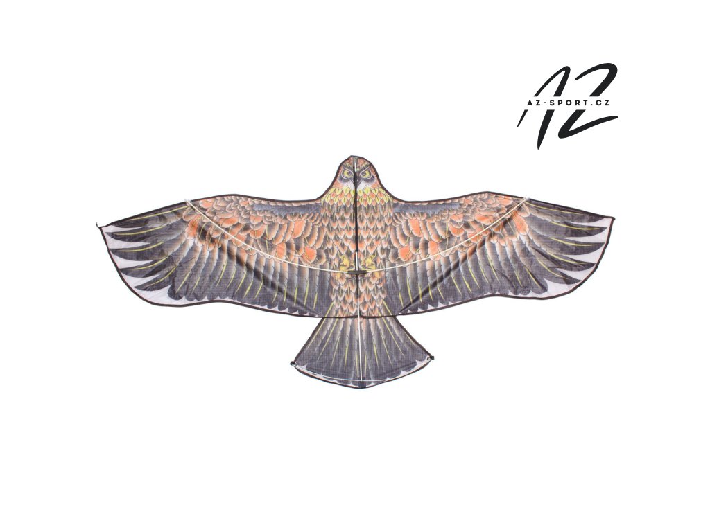 Létající drak ve tvaru orla o rozměrech 160 x 71 cm, vhodný pro děti i dospělé.