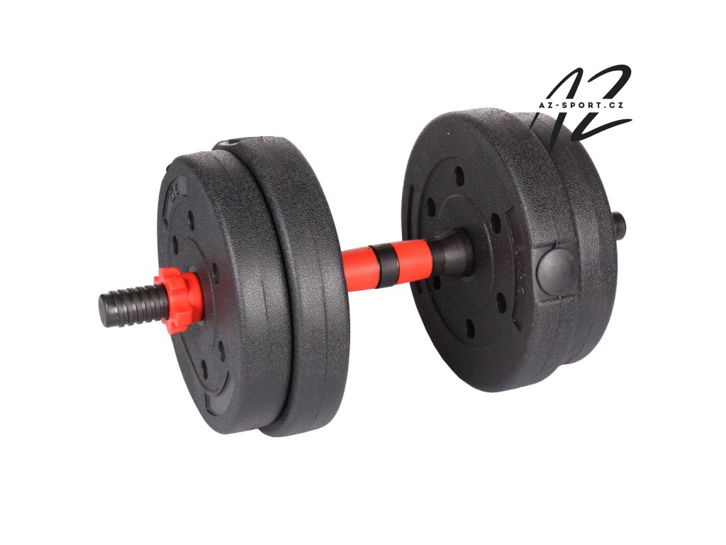 Jednoruční nakládací činka s maximální hmotností do 10 kg. Plastové kotouče s cementovou výplní.
