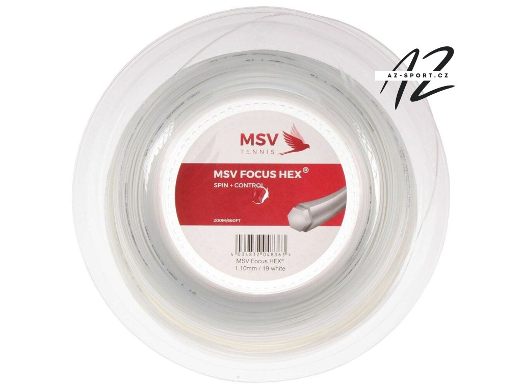 Již řadu let nejoblíbenejší a nejprodávanější výplet z řady MSV a to zejména pro svůj šestihranný profil a stálost napětí, významnou roli hraje i cena,která je oproti jiným značkám výpletů ve stejné kvalitě poloviční až třetinová. Ve všech vlastnostech nejlepší na německém Saitenforum.de (Životnost, Síla, Kontrola, Cit, Komfort, Spin, Stabilita napětí). Celková spokojenost testujících hráčů 91% (39/43 testerů). CoPoly výplet nové generace, HEXagonální profil struny (šestiúhelník). Velmi dobrá trvanlivost strun. Výplet nabízí stálé napětí a dlouhodobý výkon. MSV Focus HEX ztrácí po 30-ti dnech a mnoha hodinách usilovné hry pouze 13% ze svého napětí. Velkou výhodou je potenciál pro spinové údery. Hráči ho popisují jako "nejlepší výplet na spinové údery", a to ve všech jeho průměrech. Hra s tímto výpletem je navíc velmi pohodlná.Doplňkové parametry