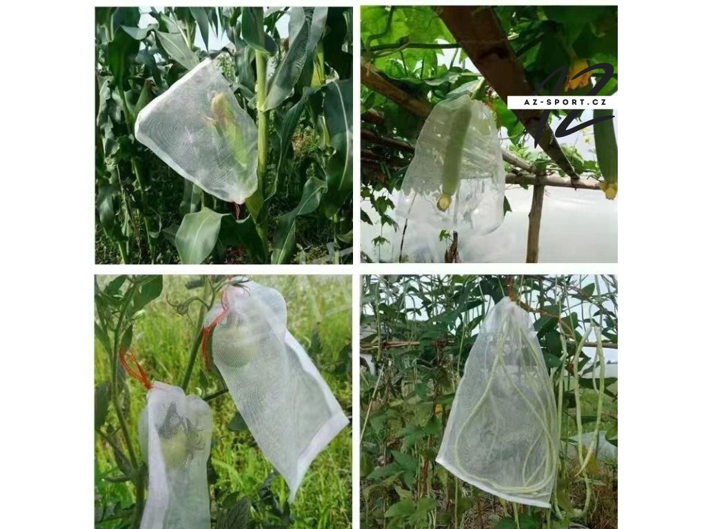 Stahovací nylonový sáček pro ochranu ovoce a zeleniny před škůdci, rozměr 45 x 29 cm, v sadě po 10 kusech.