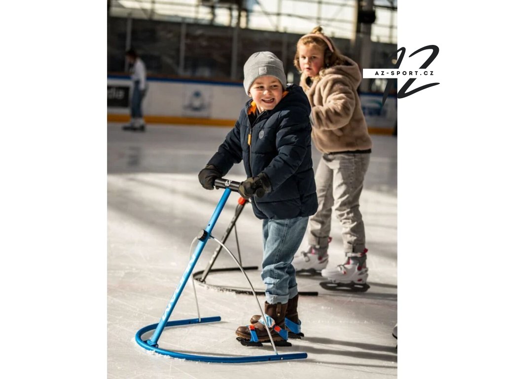 Tréninková pomůcka pro úplné začátky na ledě. Skládací hliníková konstrukce, výškově nastavitelná.
