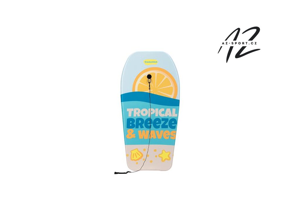 Vyražte na vlny s bodyboardem Waimea Ikaia a užijte si ve vodě tu správnou zábavu. Tato deska je lehká díky konstrukci z EPS pěny potažené PE vrstvou, díky které má bodyboard menší odpor ve vodě. Součástí je také šňůrka a náramek se zapínáním na suchý zip, aby vám bodyboard ve vodě jen tak neuplaval. Dopřejte svým dětem v bazénu či u moře kvalitní zábavu s bodyboardem Waimea Ikaia! Upozornění: Nenechávejte děti ve vodě samotné bez dozoru. Nejedná se o záchrannou pomůcku! Vždy používejte pouze pod dohledem dospělé, zodpovědné osoby! Nenechávejte dlouhodobě vystavené na přímém slunci. - rozměry cca: 93 x 48 x 5 cm - hmotnost: 0,38 kg - maximální nosnost: 30 kg - součástí šňůrka (85 cm) s náramkem - manual: BG/DE/EE/CZ/DK/EN/FR/ES/IT/FI/HU/GR/HR/NL/SLO/PL/NO/SE/LT/LV/RO/PT/SK - EN71 Toys-1, EN71 Toys-2, EN71 Toys-3Doplňkové parametry