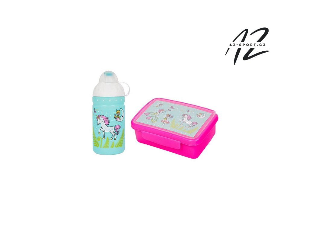 Perfektní set obsahující Zdravou láhev 500 ml, svačinový box a krytku Floppy.