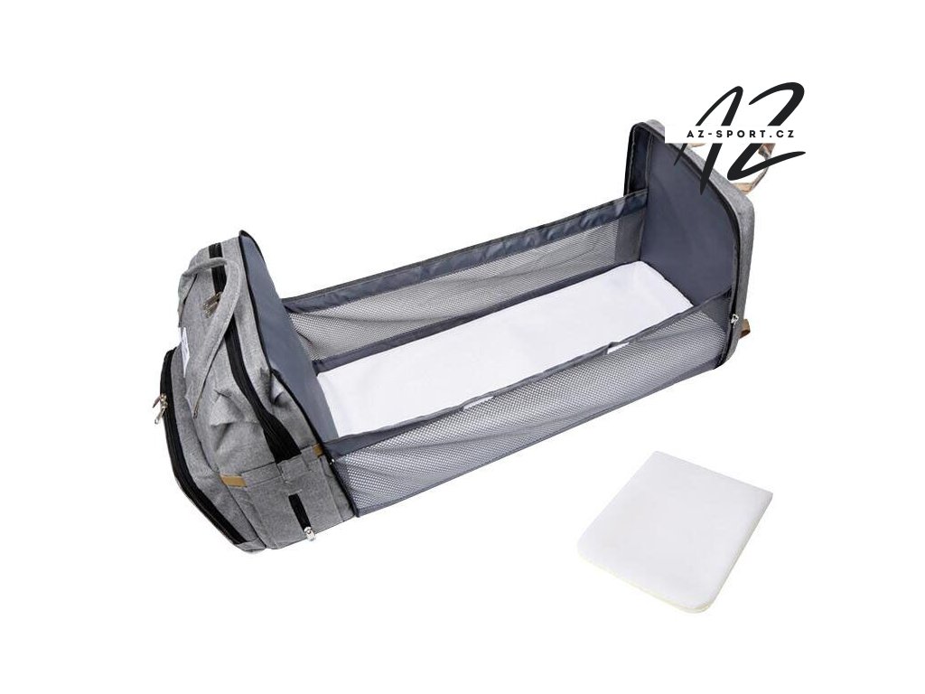 Multifunkční přebalovací batoh s přebalovací podložkou. Lze připevnit na kočárek.