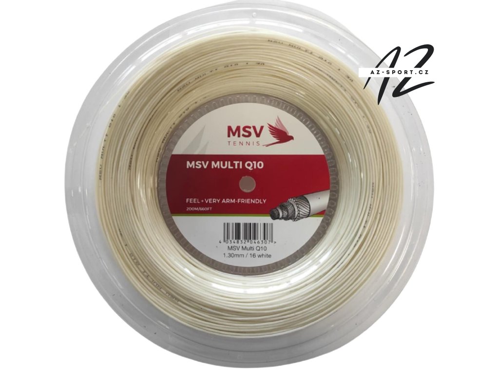 MSV Multi Q10 je moderní multifilamentní tenisový výplet, který je navržený s důrazem na maximální komfort, cit při hře a šetrnost k paži. Díky své konstrukci je ideální volbou pro hráče, kteří hledají pohodlný výplet s velmi dobrým přenosem energie a stabilním chováním při úderech. Výplet se skládá z více jemných vláken, která zajišťují měkčí odezvu, vyšší elasticitu a lepší tlumení vibrací. To ocení zejména hráči s citlivější rukou nebo sklony k přetížení paže. MSV Multi Q10 nabízí vyvážený poměr mezi komfortem a kontrolou, aniž by ztrácel dynamiku při útočné hře. - multifilamentní konstrukce pro vysoký komfort - velmi dobrý cit a dynamika úderů - šetrný k paži a snížení vibrací - vyvážená kombinace kontroly a výkonu - stabilní napětí po delší dobu hraní - průměr 1.30 Naměřené hodnoty z racketpedia.com: - 100 % výkon - 90 % stabilita napětí - 85 % komfort / šetrnost k paži - 80 % spinový potenciál Doporučení: Při vyplétání se doporučuje předepnutí (pre-stretch) 5 %.Doplňkové parametry