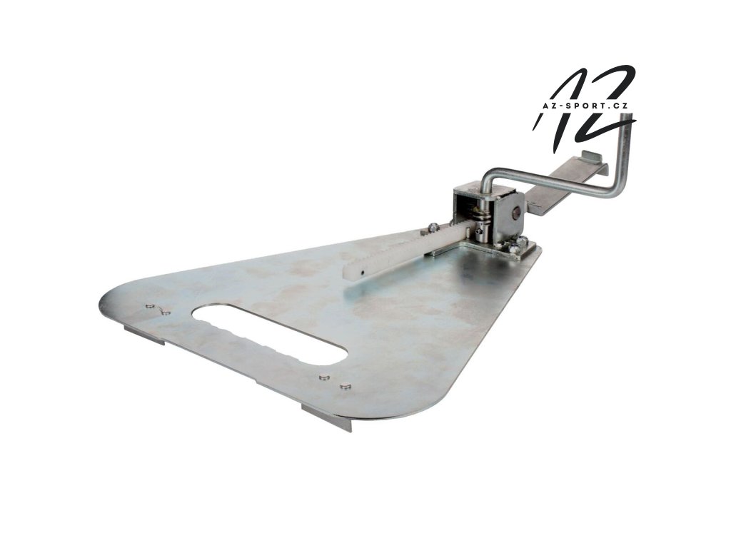 Napínací mechanismus z pozinkované konstrukce, pro snadné napnutí umělých lajn Geniala.