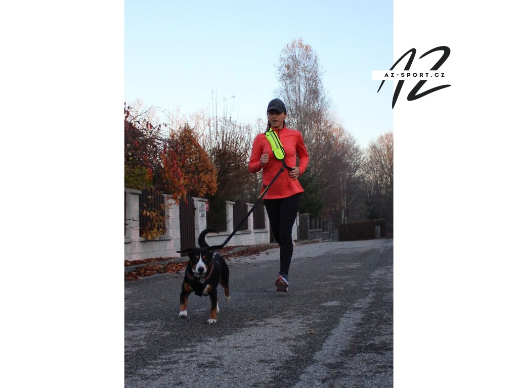 Běžecké vodítko pro psa s ledvinkou pro uložení drobností.