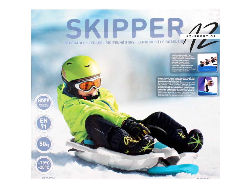 Kvalitní zimní boby Skipper jsou určené pro děti ve věku 3+ let. Řiditelné boby Skipper jsou vyrobené z odolného HDPE plastu, jejich délka je 98 cm, šířka 42 cm, výška 18 cm a hmotnost přibližně 2,2 kg. Brzdy se nasazují jednoduchým systémem plug & play bez nutnosti složité montáže. Díky volantu jsou lehce ovladatelné a na každém kopci tak bude vaše dítě zkušeným závodníkem. Ergonomické vestavěné sedátko chrání dítě před chladem. Maximální zatížení bobů Skipper je 50 kg a jsou k dispozici v různých barevných variantách. Výrobek je nutné používat jen pod dohledem dospělé a kompetentní osoby, na dostatečné vrstvě sněhu, na svazích a terénech bez pevných překážek.Doplňkové parametry