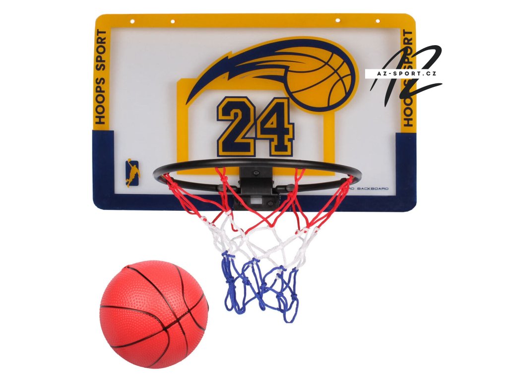 Dětský basketbalový koš s průměrem 25 cm a deskou 40 x 26 cm, včetně míčku a háčků na zavěšení.